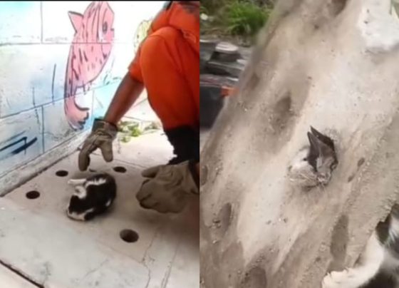 bombeiros salvam filhote de gato com cabeça presa em bueiro de creche