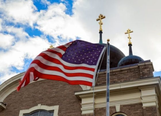 Bandeira dos EUA e duas cruzes no topo de uma igreja (Foto: Canva Pro) Especulações sobre um possível renascimento religioso…