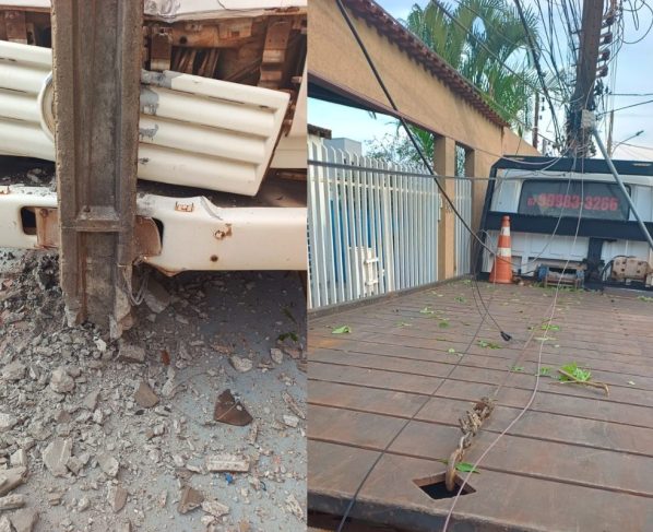 Caminhão-guincho desgovernado atinge poste e deixa moradores sem energia em Campo Grande