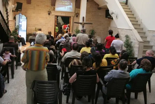 Cristãos em um Centro de Esperança em uma igreja histórica, no Iraque