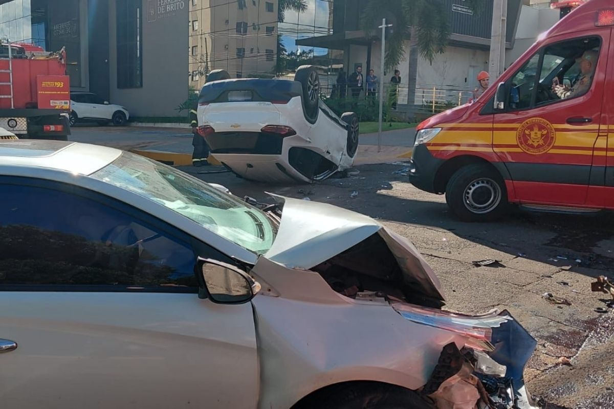 A colisão de dois veículos terminou com um capotamento na tarde desta quarta-feira (8), em Campo Grande. O acidente deixou o trânsito movimentado no cruzamento da Rua Brasil com a Abrão Júlio Rahe.